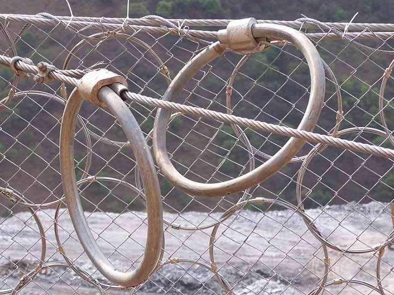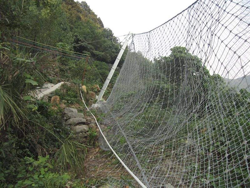 被動防護網是由鋼絲繩網、環形網、(需攔截小塊落石時附加一層鐵絲格柵)、固定系統(錨桿、拉錨繩、基座和支撐繩)減壓環和鋼柱四個主要部分構成。鋼柱和鋼絲繩網連接組合構成一個整體,對所防護的區域形成面防護,從而阻止崩塌巖石土體的下墜,起到邊坡防護作用。材質:鋼絲繩網、支撐繩和減壓環。構造:由鋼絲繩網或環形網(需攔截小塊落石時附加一層鐵絲格柵)、固定系統(錨桿、攔錨繩、基座和支撐繩)、減壓環和鋼柱四個主要部分構成。適用于建筑設施旁有緩沖地帶的高山峻嶺,把巖崩、飛石、雪崩、泥石流攔截在建筑設施之外,避開災害對建筑設施的毀壞 。常用規格:[鋼柱(間距10M),帶消能環的∮16雙支撐繩和∮16“人”字形上拉錨繩(每跨6個消能環),∮16側拉錨繩(單繩),◇/08/200/4*5㎡鋼絲繩網,∮8縫合繩,格柵網]