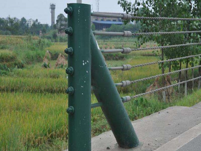 纜索護欄的組成部分:纜索護欄立柱、纜索、纜索護欄中間立柱、托架等。纜索護欄中立立柱主要起到支撐纜索的作用。真正吃力的在纜索護欄兩端立柱,需要將纜索撐緊,這樣才能保證纜索護欄的有效防護。